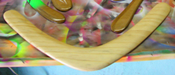Descrição: Existem vários tipos de materiais para fabricação de bumerangues, os que mais se destacam são os laminados.