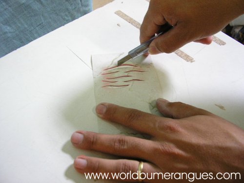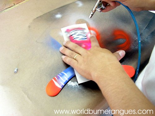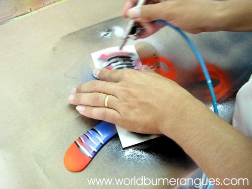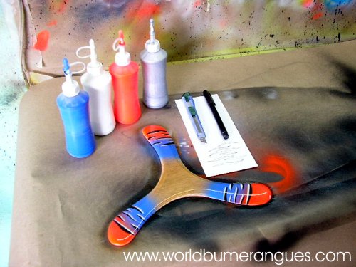Aplique a tinta branca nas pontas do bumerangue, aqui estamos